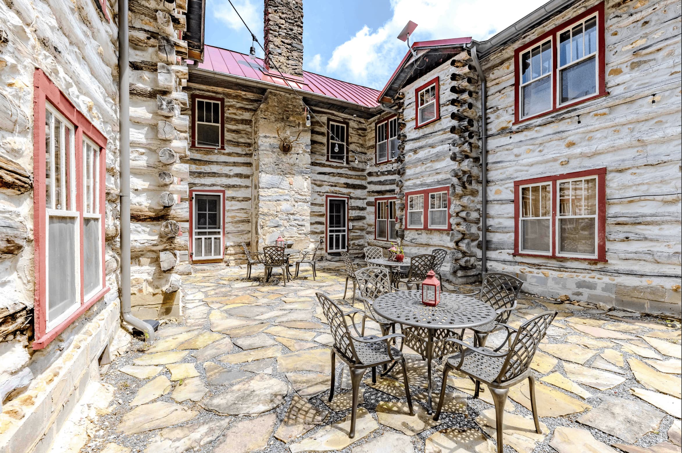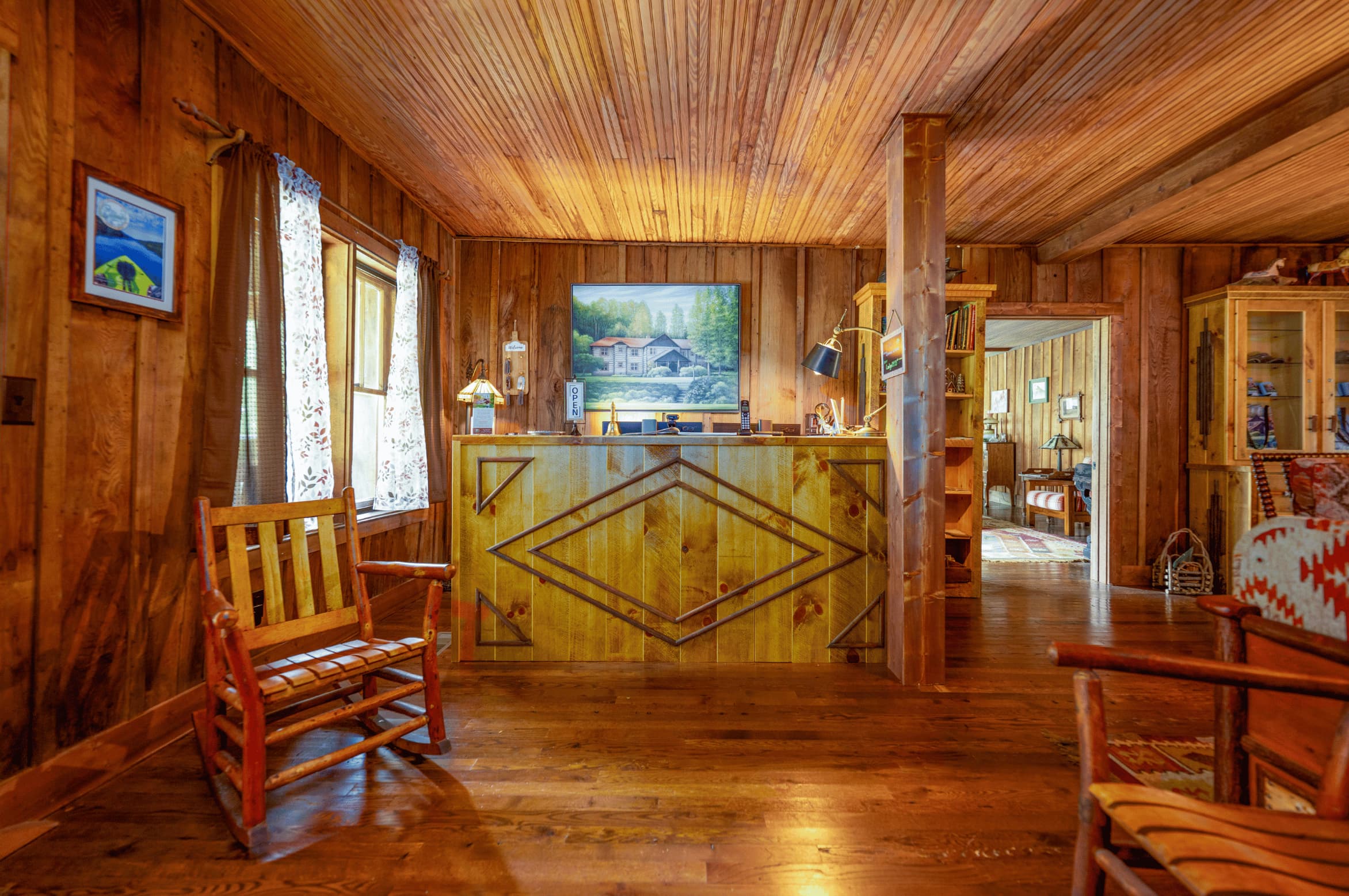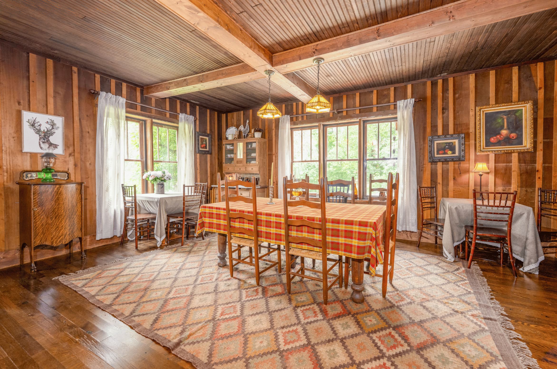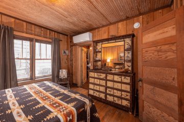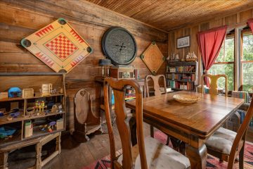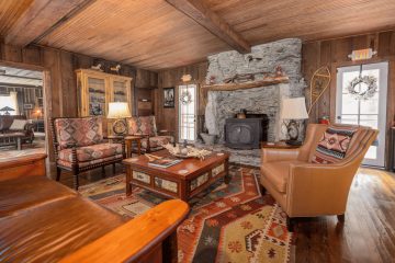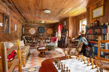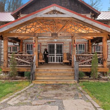 The lodge’s sturdy and formidable structure is built from wormy chestnut logs harvested from the land and surrounding areas. Efforts have been made to maintain the lodge’s rustic and simple charm, ensuring it can be shared with those who appreciate its historical significance and enduring beauty.