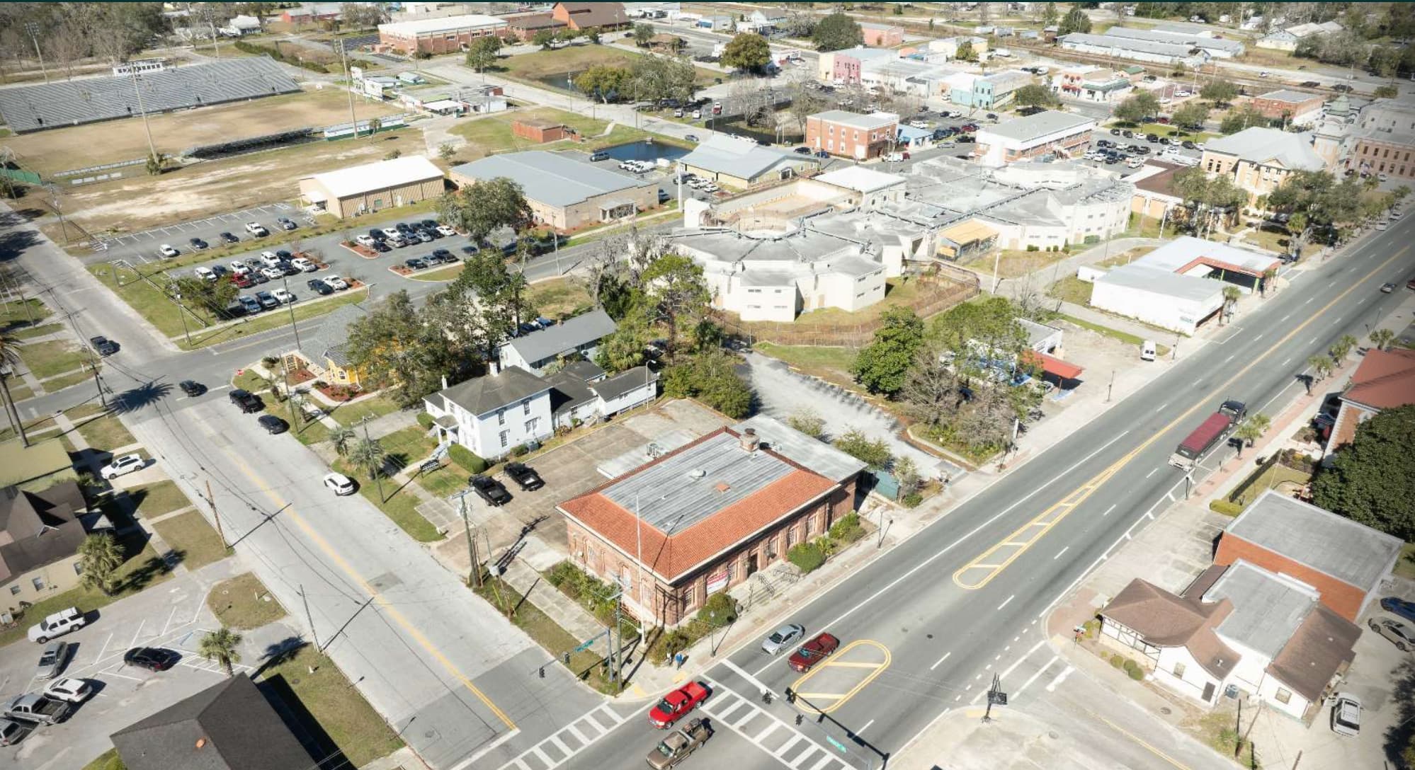 The historic Live Oak Post Office at 400 S Ohio Ave was built around 1915 and served the community for over 100 years until 2019.