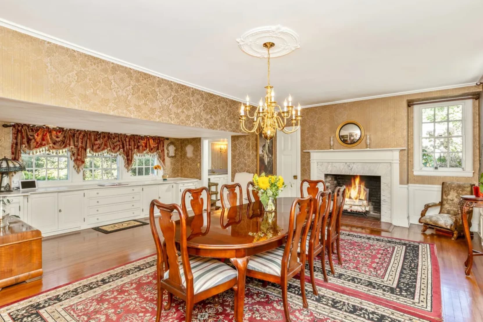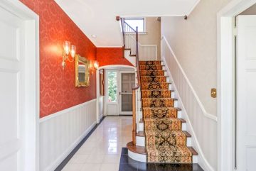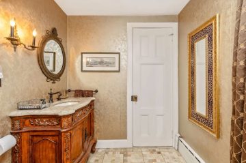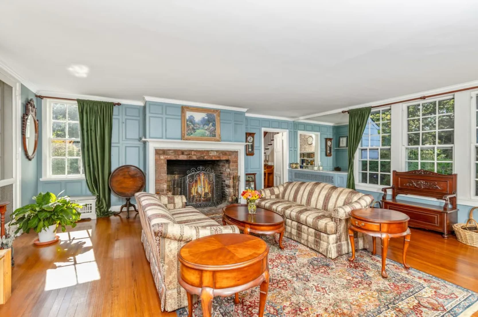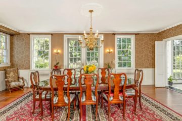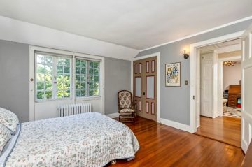 Built for Francis LeBaron Robbins, a New York lawyer and a direct descendant of the Mayflower's Governor Bradford, the home spans 5020 sq. ft and boasts 9 bedrooms, 4 1/2 baths and 5 wood burning fireplaces. It's located on 2 acres.