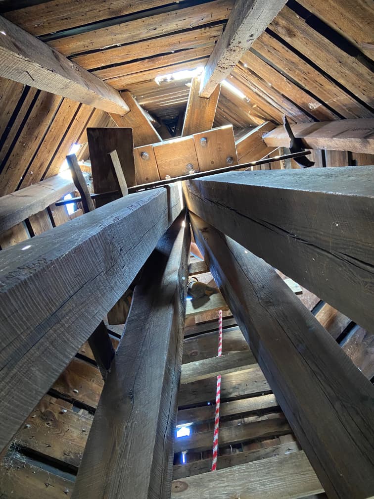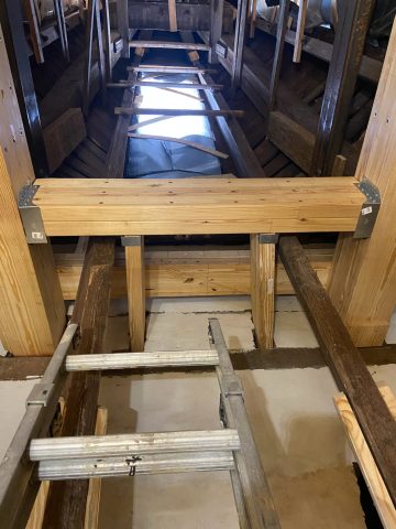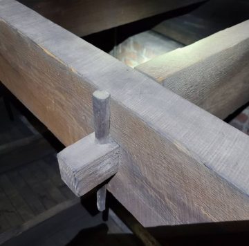 Historic restoration and preservation of timber framed structures is a timber framer’s dream job. Not only do we get to do timber frame work, we usually get access to parts of historic buildings not generally seen. When most people enter a historic building, they look at the living or working spaces and want to envision the day to day lives of the past inhabitants. We immediately want to see the crawlspace, the basement, and the attic. That is usually where we can find the old timbers.